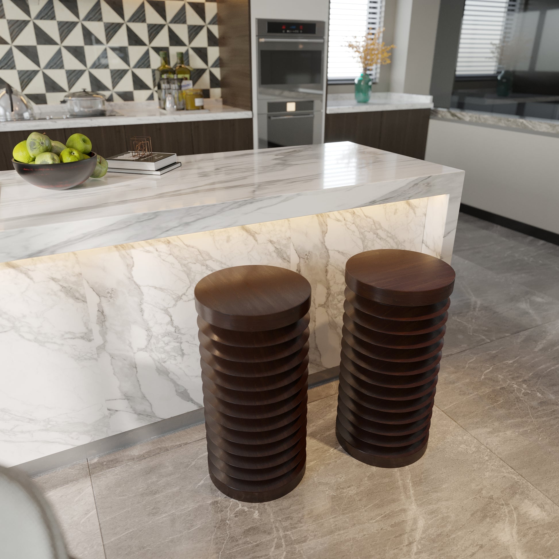 Crafted entirely from solid wood and meticulously handmade, each stool exudes quality craftsmanship and durability. With dimensions of 27 inch in height and 13 inch in width, it provides a comfortable seating experience while complementing your interior decor.