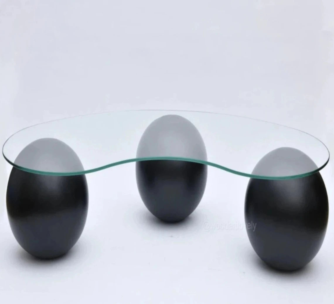 Designed to elevate any space, this coffee table serves as a stunning centerpiece in homes, showrooms, or any environment that values design excellence. Its unique glass top, reminiscent of a bean shape, adds a touch of sophistication and modernity to any room.
