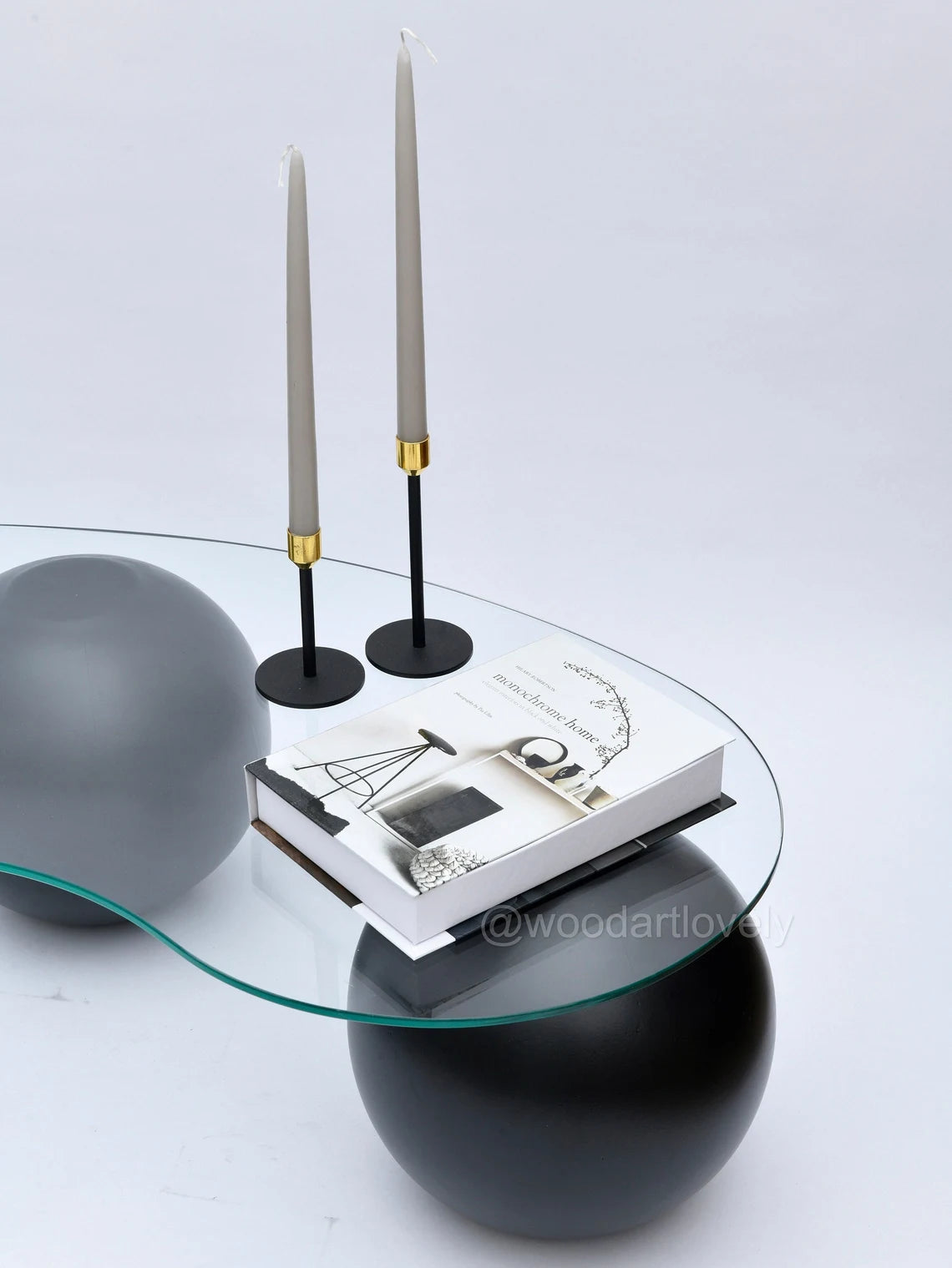 Choose from two different sizes of wooden ball legs, M and L, to suit your space and preferences. We also offer various wood finish options for you to select from. For those looking for further customization, feel free to inquire about custom glass sizes and different colored balls to match your unique style.