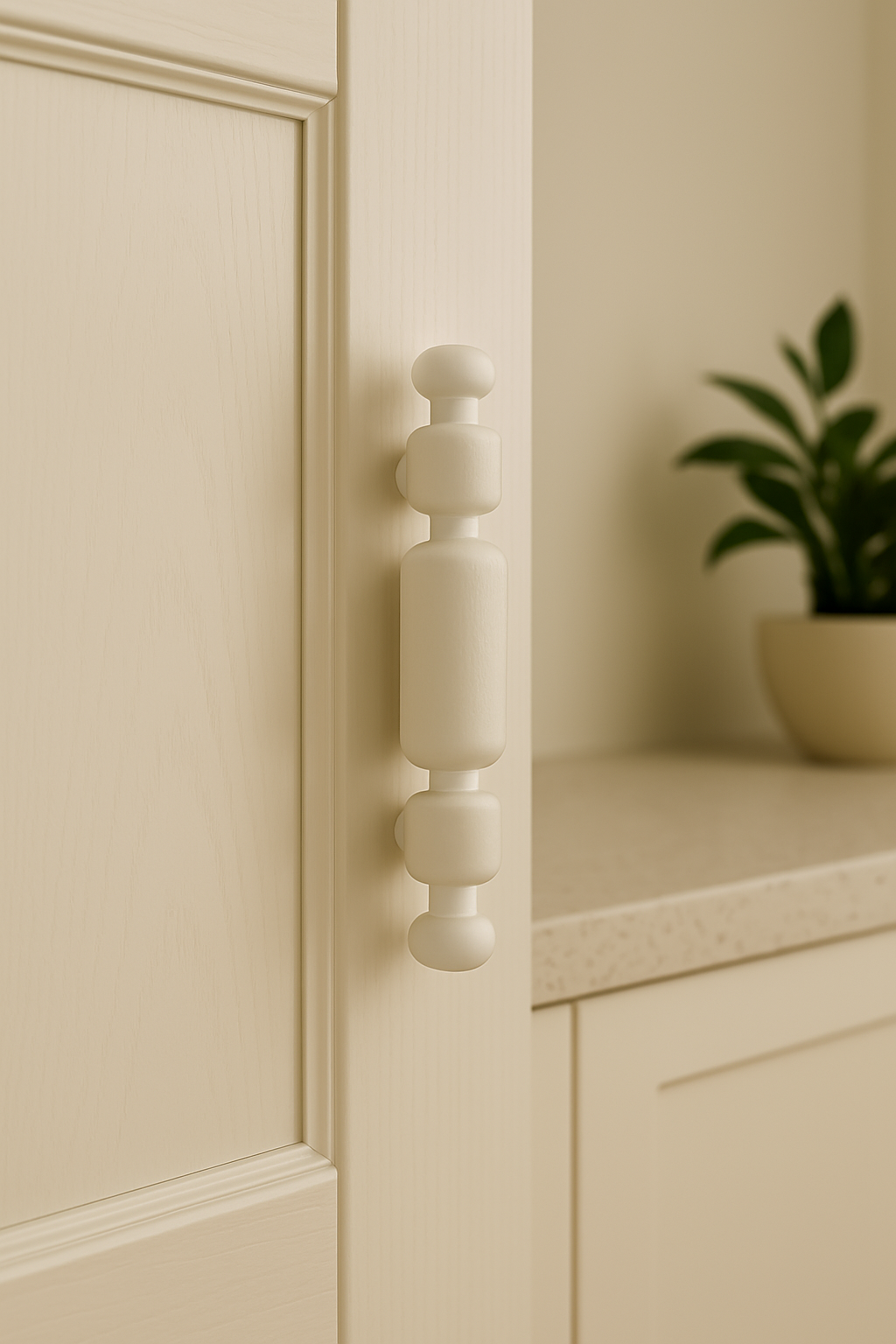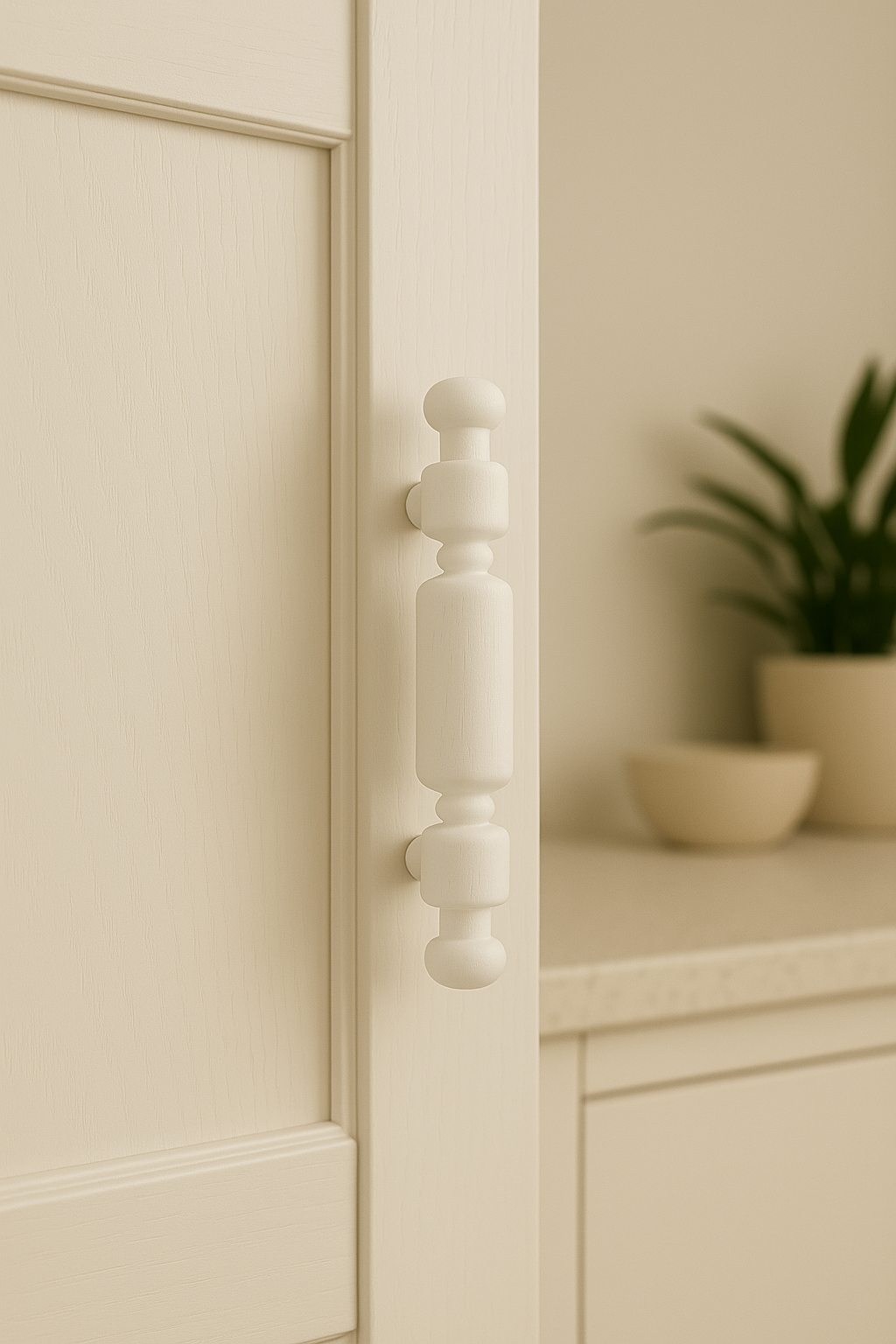 Handmade Wood Cabinet Pull – White Handle – Minimalist Drawer Knob, White Finish