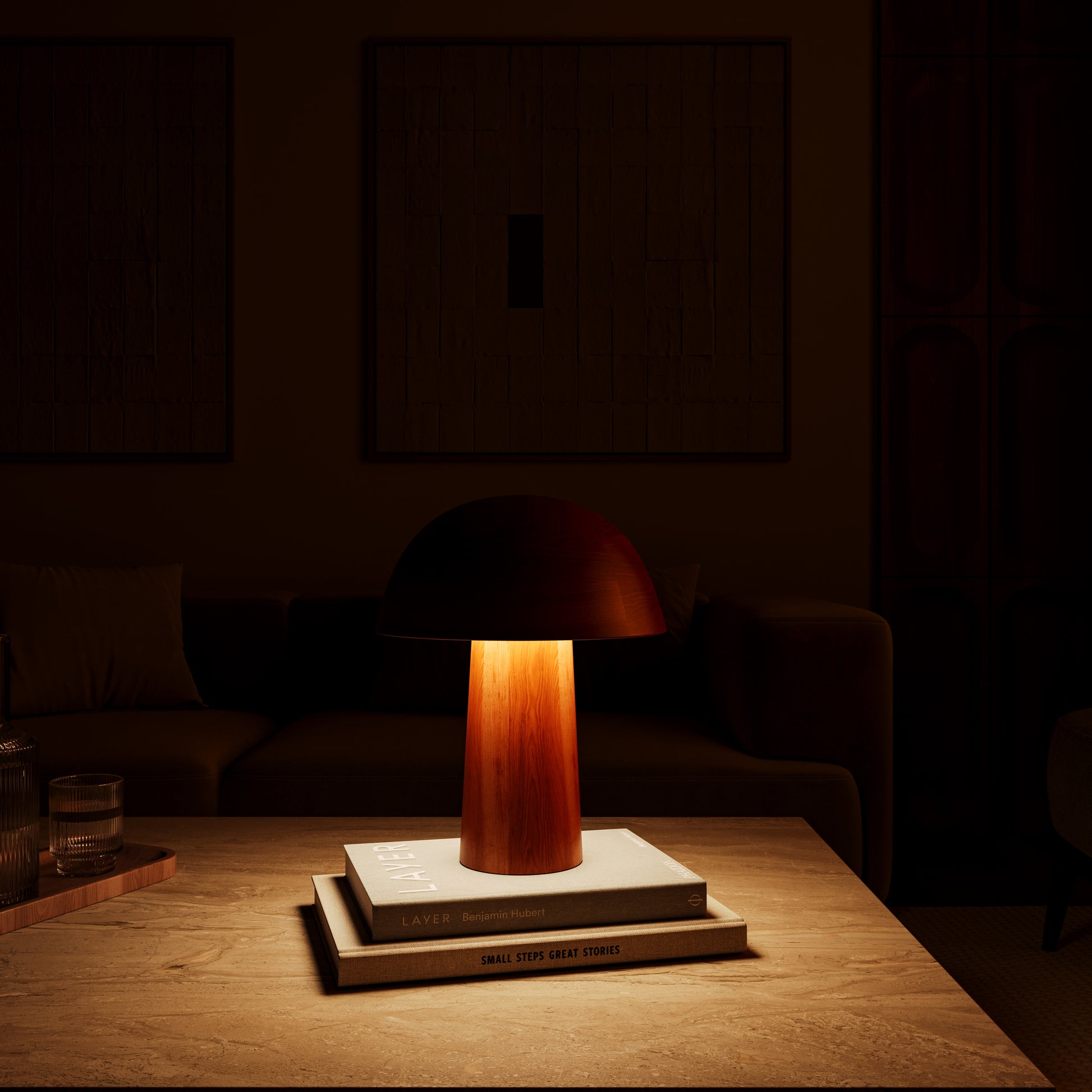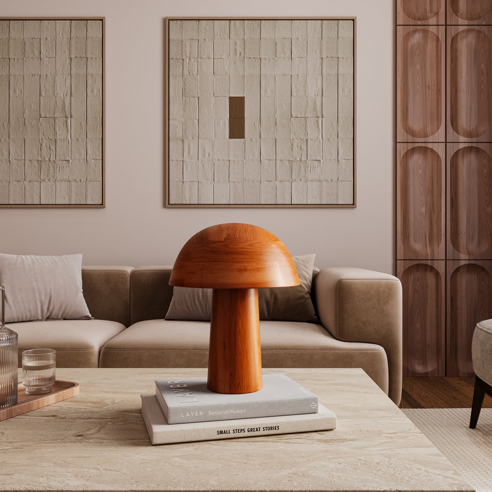 Each of our products is meticulously crafted from solid wood. As nature's canvas, wood grain patterns may vary, ensuring each piece is truly one-of-a-kind. Drawing inspiration from the organic form of mushrooms, our lamp is carved from solid beech wood, showcasing the inherent beauty and uniqueness of the material.