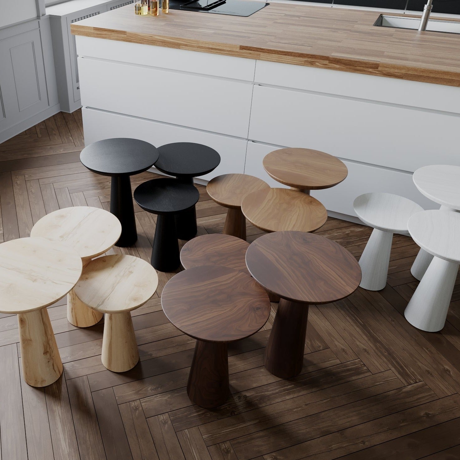 Choose from a variety of rich finishes including Walnut, Dark Walnut, Black, White, Natural, and Raw to complement your space perfectly. With customization options available for size and color, you can tailor-make your Mushroom Coffee Table to suit your unique preferences and needs.