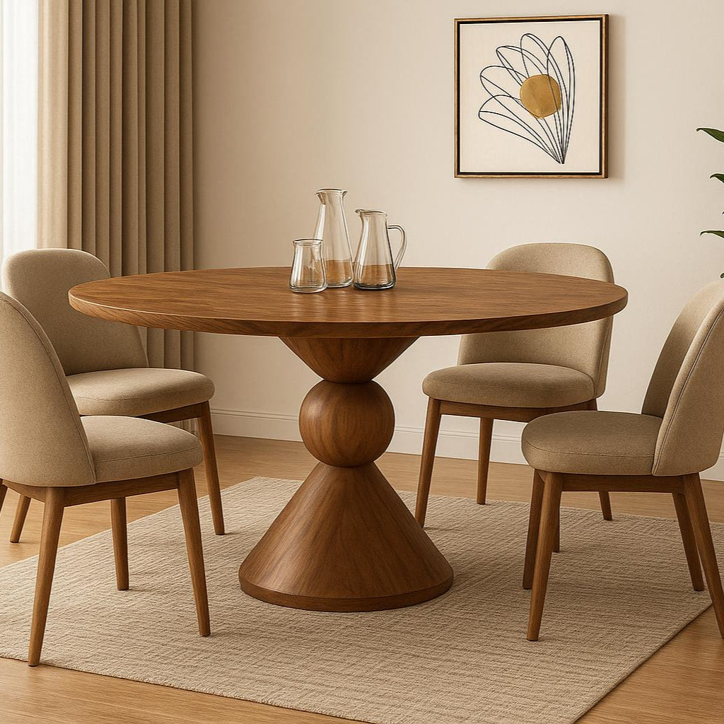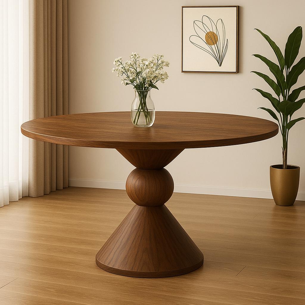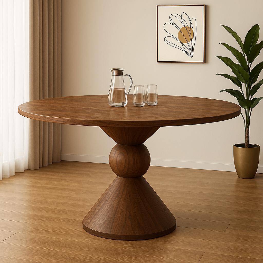 Elevate your dining space with the timeless elegance of the Orbella Round Dining Table. Crafted entirely by hand from 100% solid walnut wood, this sculptural centerpiece features a bold, artistic base and a smooth circular top that adds warmth and sophistication to any interior.
