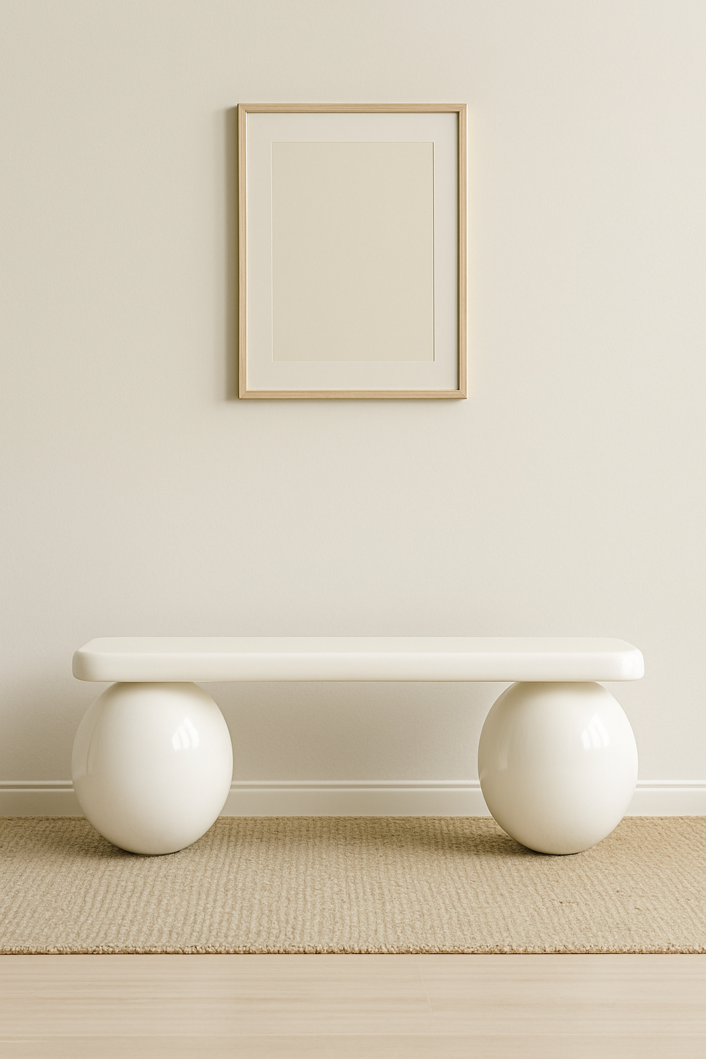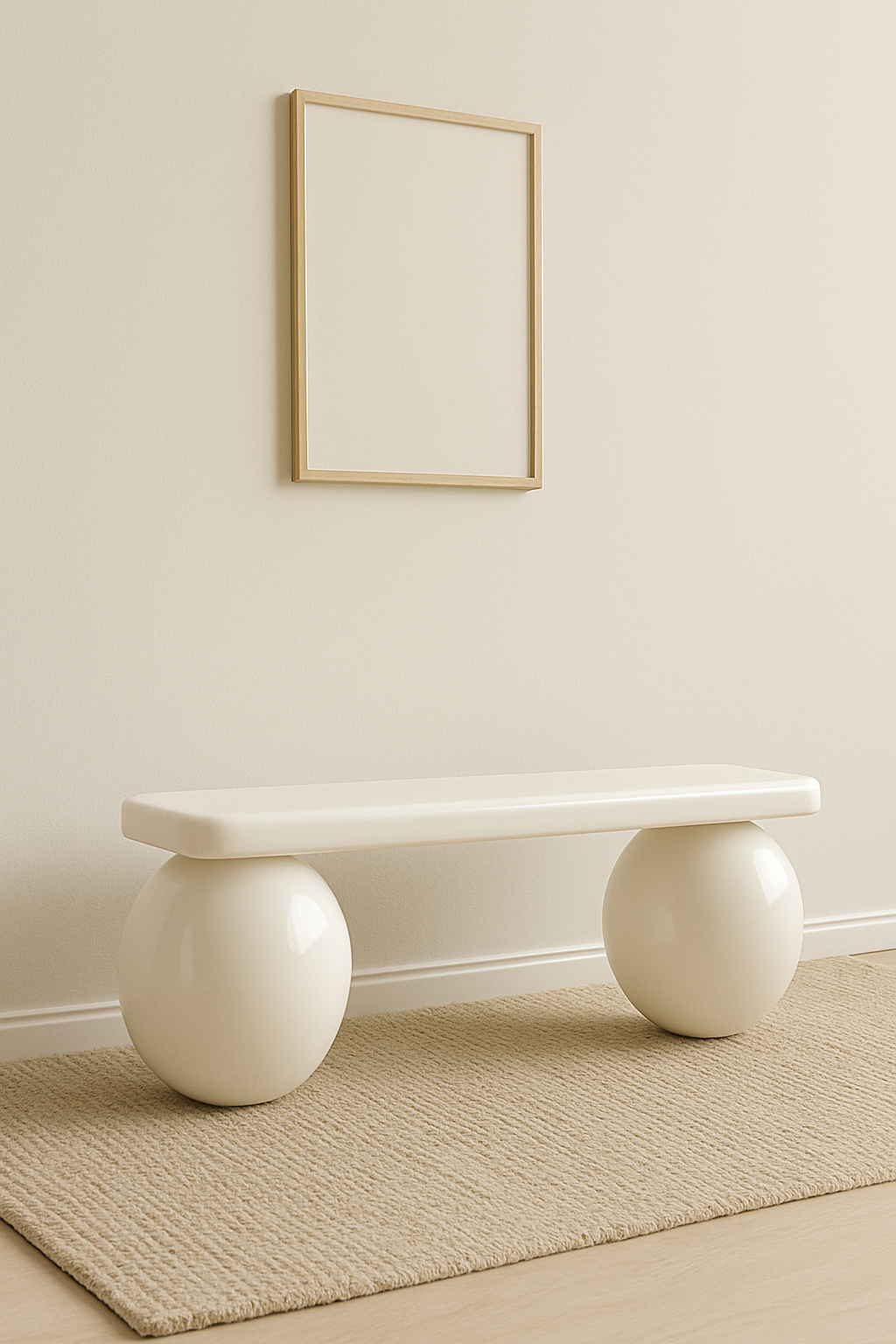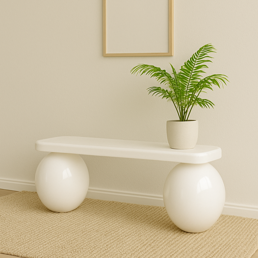 Glossy White Accent Bench – Minimalist Seating with Sculptural Form