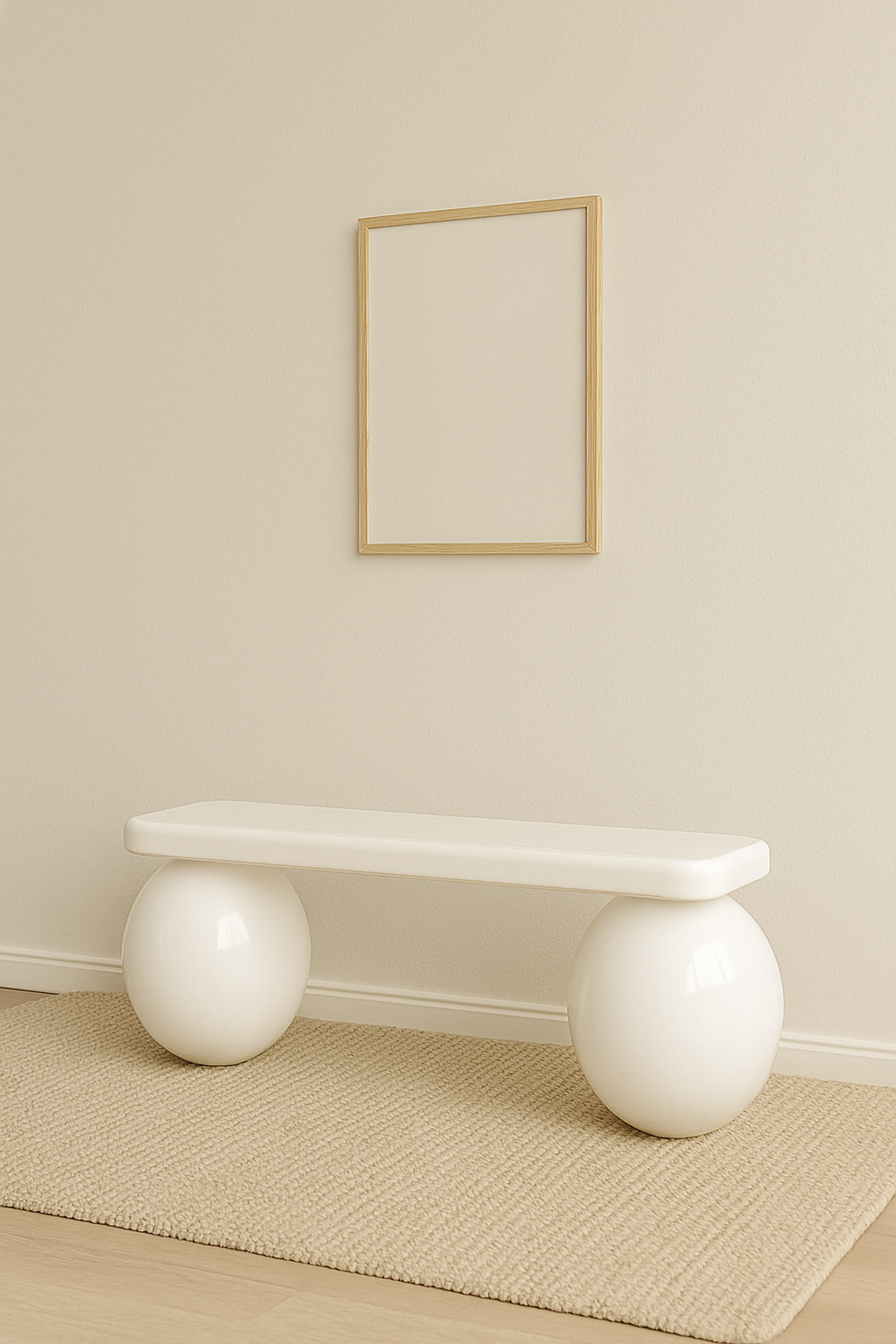 Elevate your space with this handcrafted glossy white bench, designed to be both functional and artistic. Its signature rounded wood legs and high-gloss finish give it a modern sculptural appeal – perfect for entryways, hallways, or as a decorative piece in living areas.