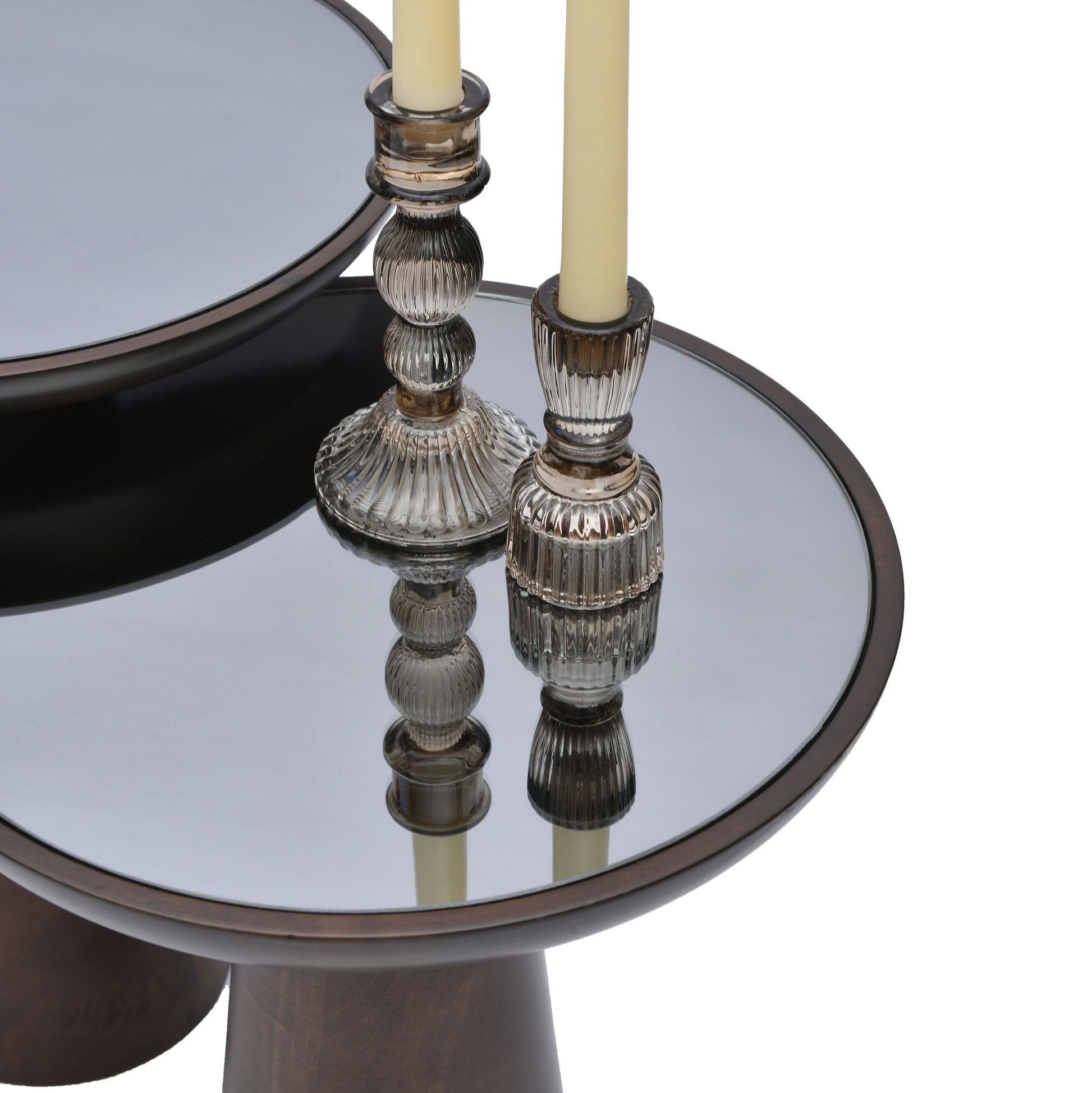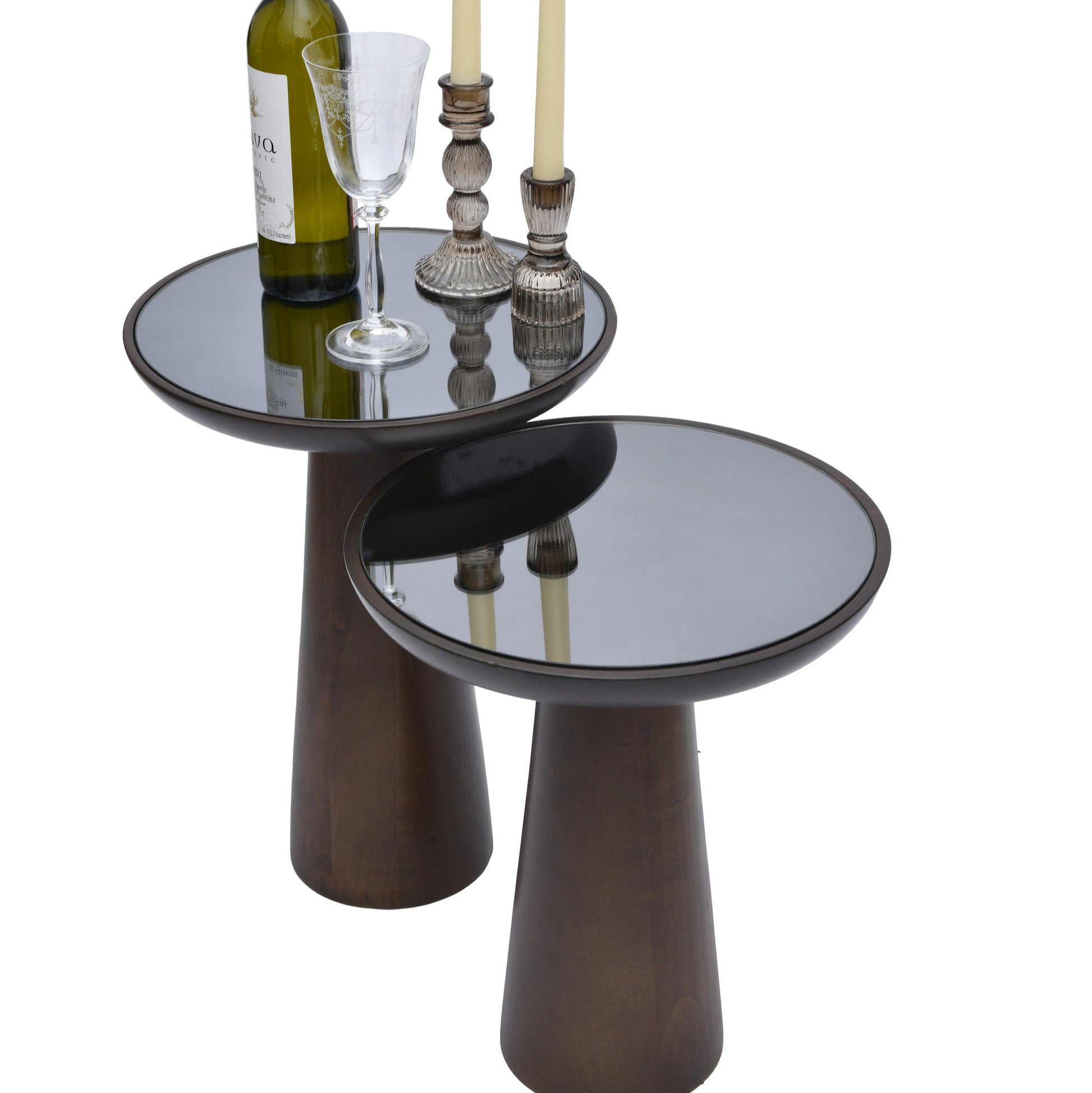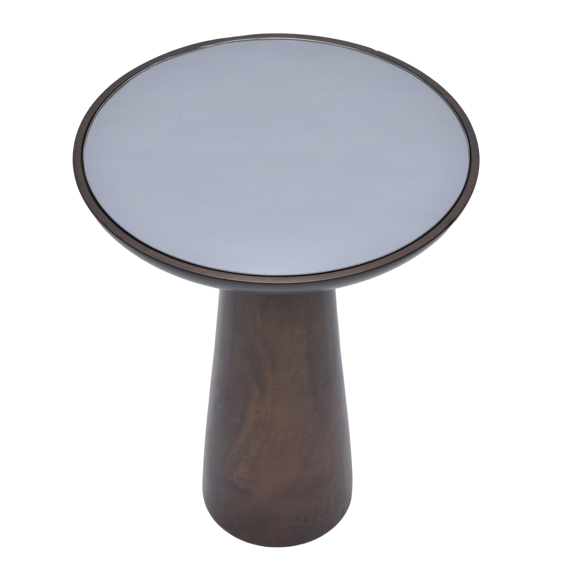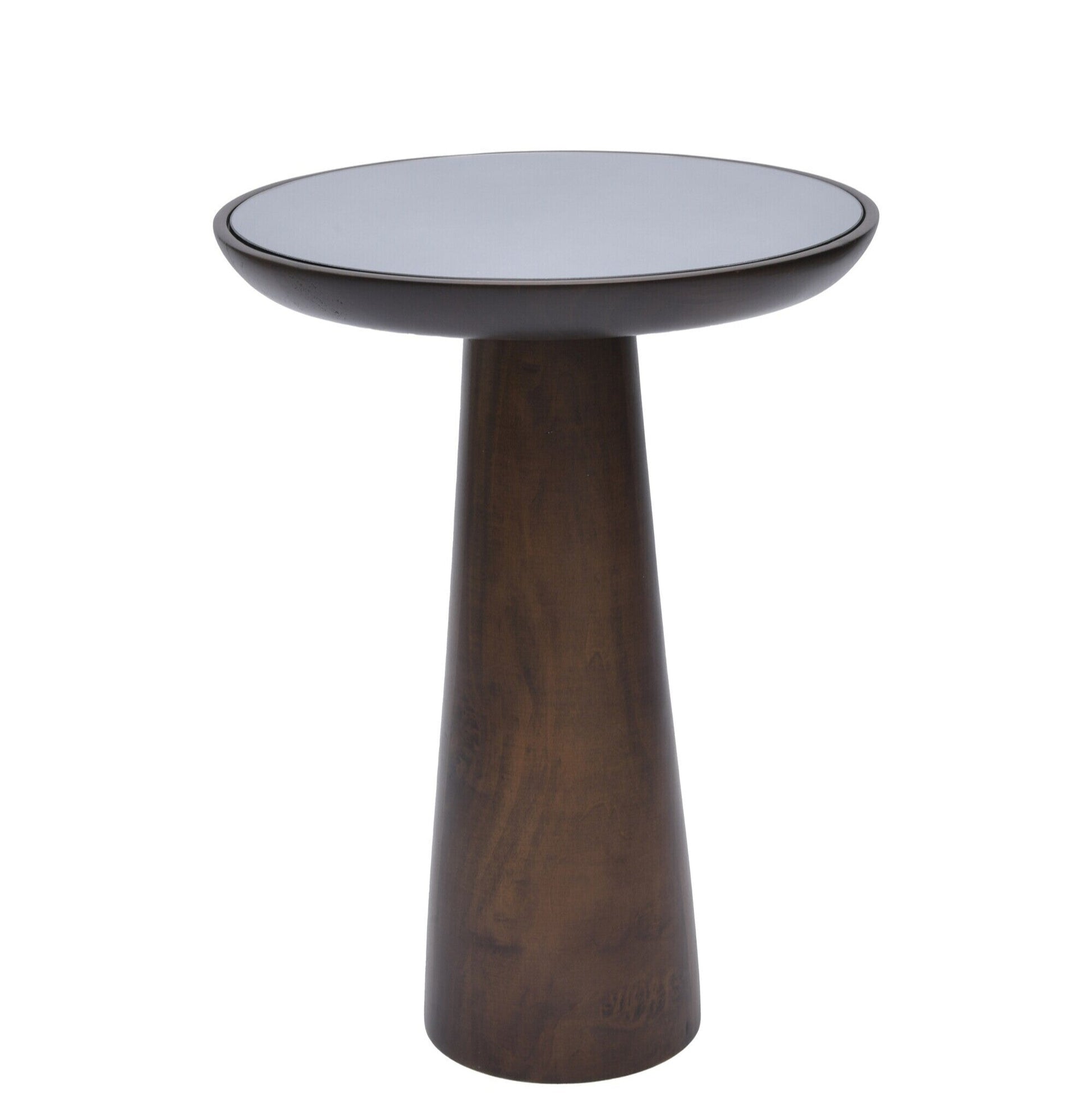 Mirrored Wooden Mushroom Side Table, Dark Walnut finish and other color options