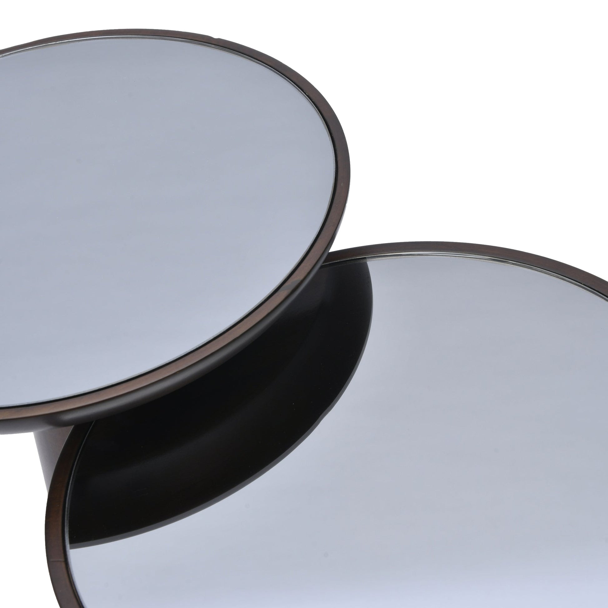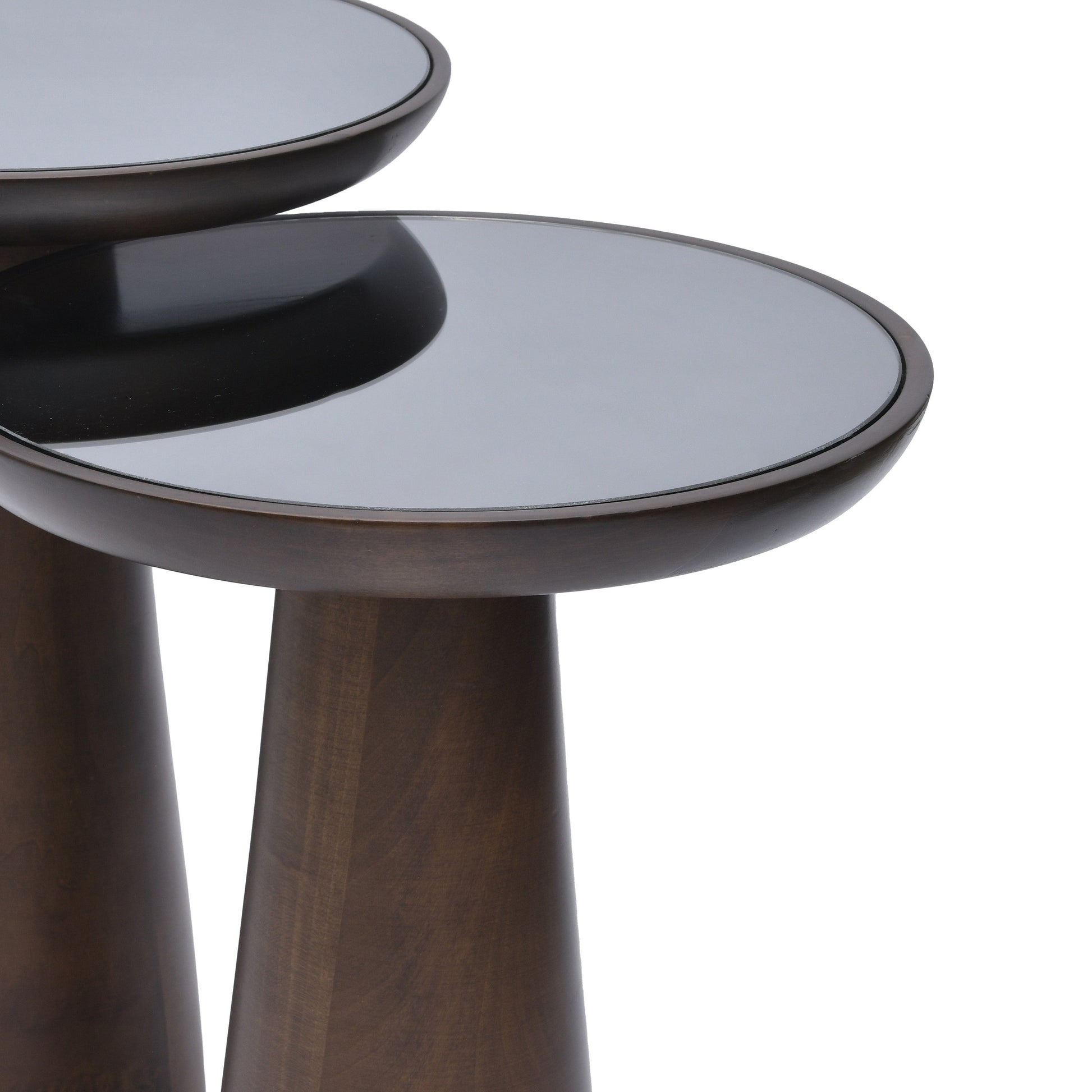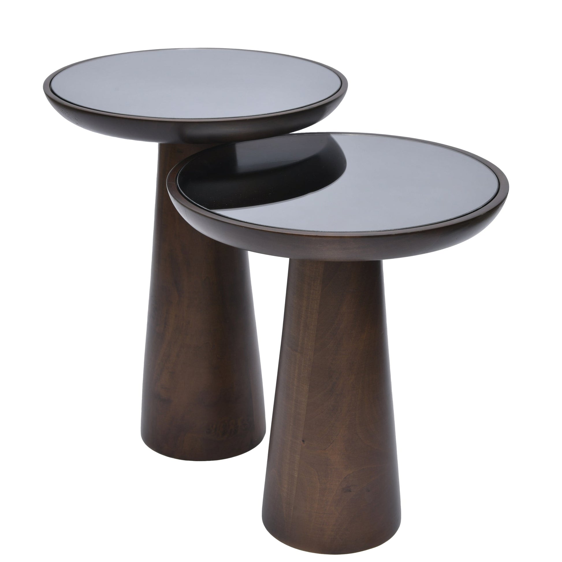 Available in single units or sets of two and three, our Mushroom Side Tables offer flexibility to accommodate your space requirements. With tabletop diameters fixed at 13.75 Inch (35cm) across all sizes, each table boasts its own unique natural wood grain patterns, adding a touch of organic beauty to your environment. Dark Smoke Mirrored