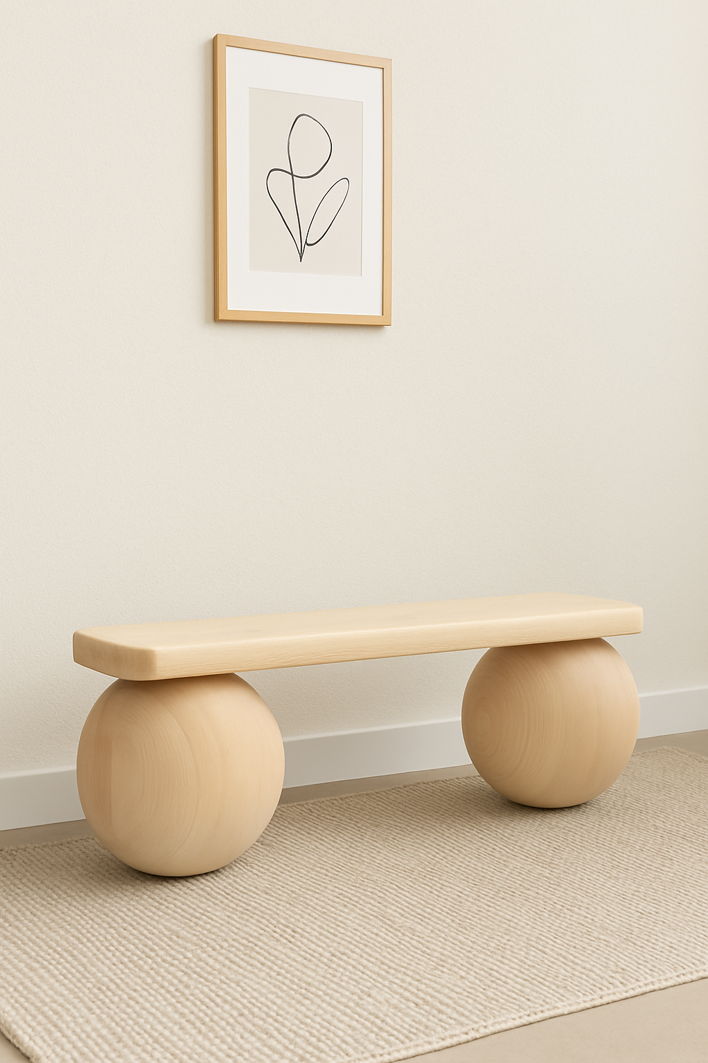 Wooden Sphere Bench – Modern Entryway Bench, Sculptural Ball Leg Stool, Minimalist Mudroom Furniture, Unique Handmade Seat